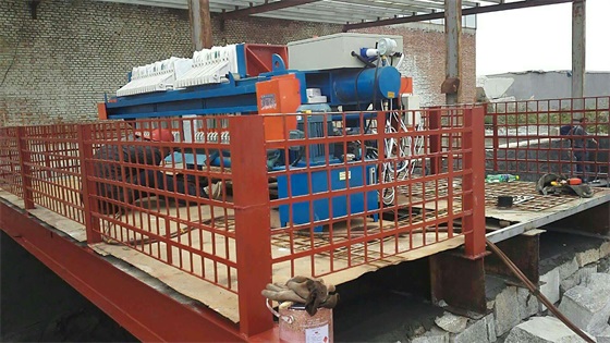 濾布裝在濾板的兩側(cè),在壓緊裝置的作用下,濾板被壓緊在壓緊板和止推板之間,每兩塊兒濾板之間形成了一個(gè)封閉的過濾空間,